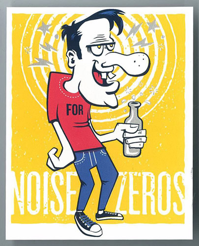 Noise for Zeros started two years ago in December of 2008, so I want to mark the occasion with a giant thank you to all the readers, commenters, and most of all the unheralded noisemakers who inspired me to do this blog in the first place. The first 10 people to comment to this post will receive via the USPS, a limited edition 4 x 6″ (okay, not so giant I guess) Noise for Zeros screen print by yours truly, perfect for framing and/or showcasing your rabid fandom of things no one else has heard of or cares about. Don’t wait! Comment now, before Viagra-hocking Russian spammers beat you to it…